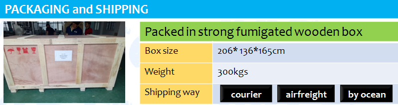 | Post-servo | La vendisto provizas instrumenton kaj filmeton pri kiel instali, ĝustigi kaj uzi la maŝinon tuj kiam la maŝino estos preta. La vendisto provizas provizore servon kiam uzanto havas problemon pri uzo. La vendisto povas sendi unu inĝenieron al la fabriko de la aĉetanto por instalado kaj komisiado kaj trejnado, la aĉetanto respondecos pri la ĉambro kaj estraro kaj pri la malantaŭa flugpagoj kaj vizita kotizo. |